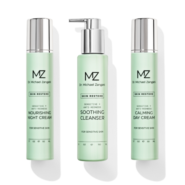 Beroligende komplettpleie for sensitiv og rosacea-utsatt hud.